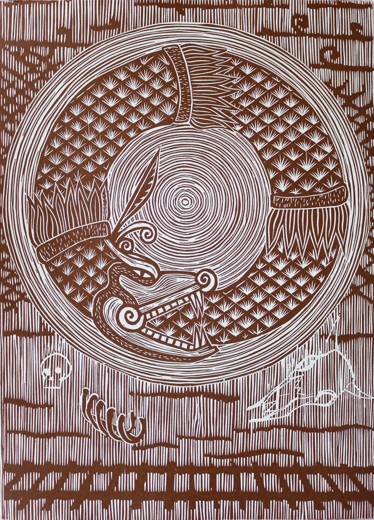 + Ouroboros. Relief print,11in x 15.5in, 2018.