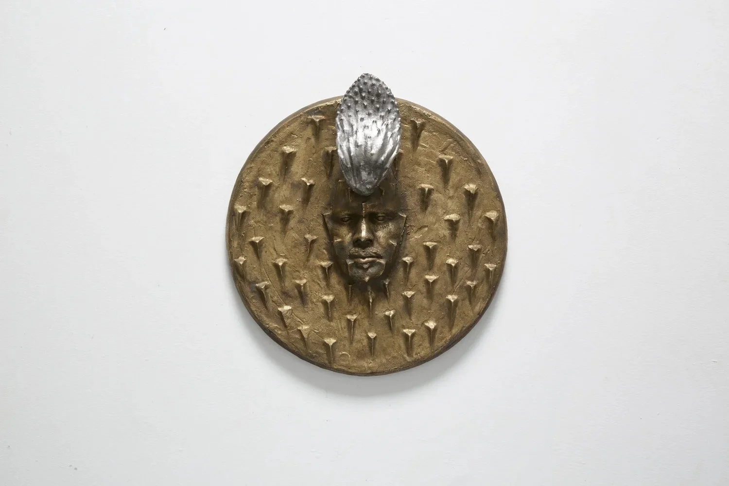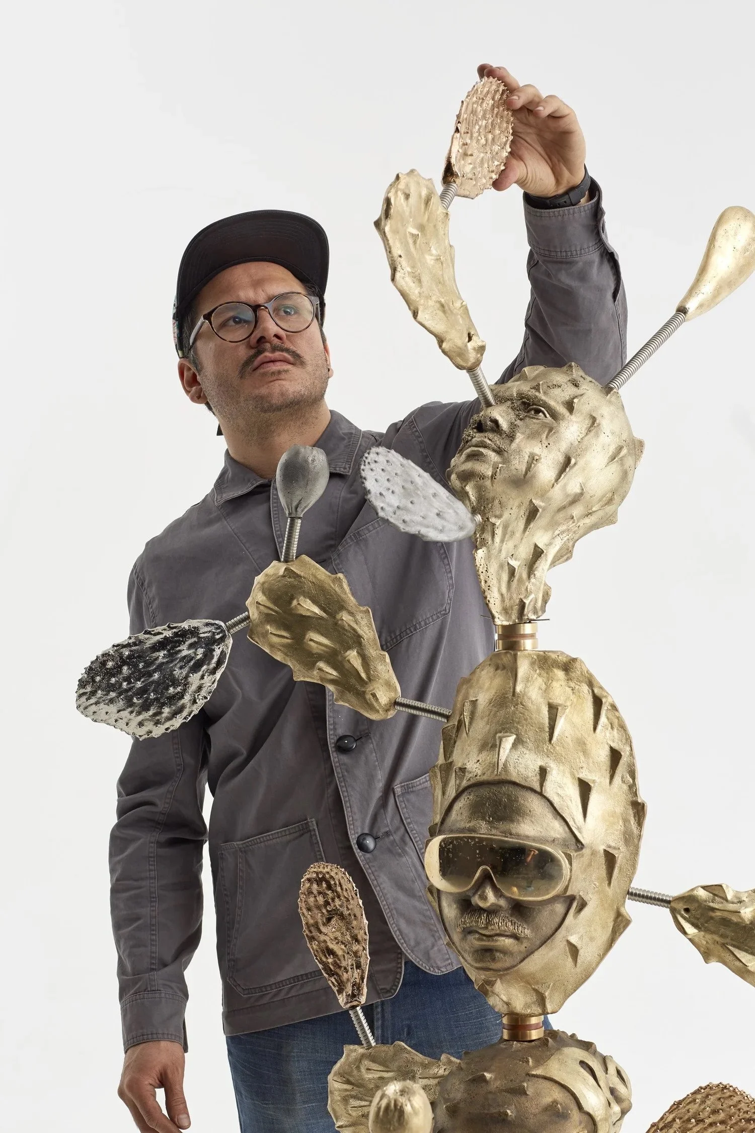 + Artista con el nopal en la frente / Artist with the Cactus on the Forehead, Brass and Cast Iron, 22 in x 22 in x 4 in, 2019. Kohler Arts/Industry Permanent Collection.